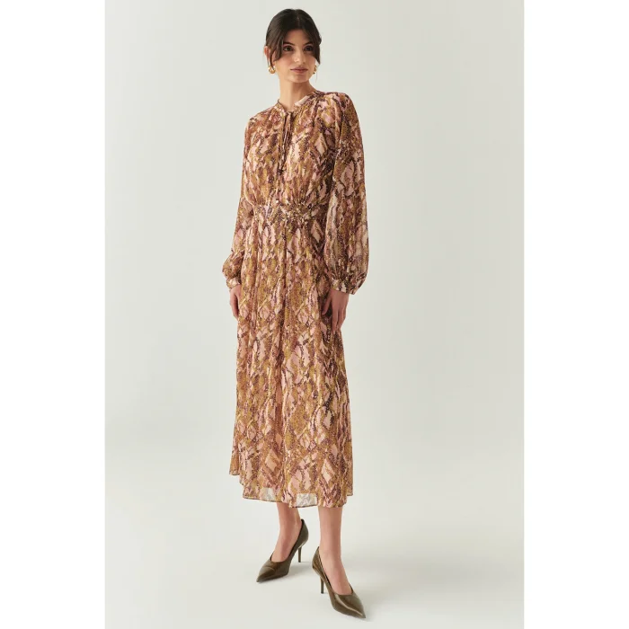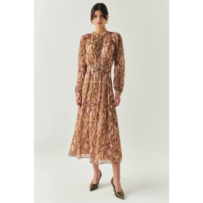 The dress model, which looks simple and stylish with its wide collars and cuff details on the wrists, is enlivened with the knot detail on the front. You can wear the dress, which offers a fresh and comfortable use thanks to its 100% viscose fabric, with a stylish trench coat or a long jacket model and wear it with pleasure in many areas, from the office to special events.