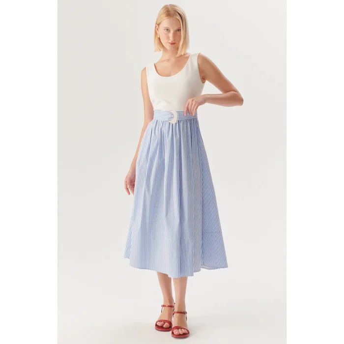 Product: Waist Buckled Striped Regular Midi Dress