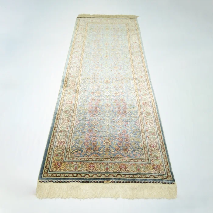 Product: Handwoven Pure Silk Steel Blue Runner Rug From Kayseri 85x220 Cm (2.8x7.2 Ft)