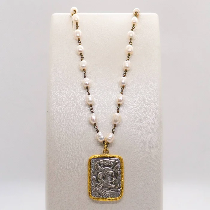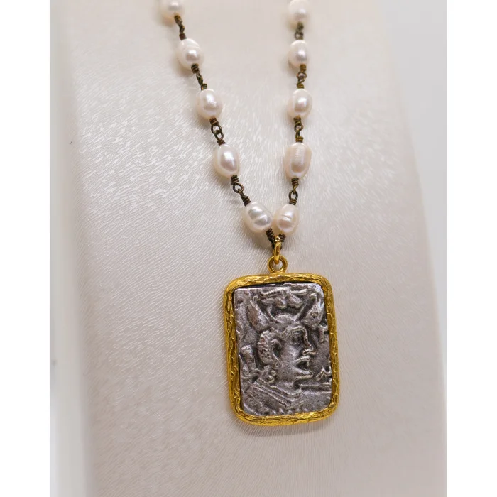 Product: Sterling Necklace With Genuine Pearl And Ancient Greek Coin Detail