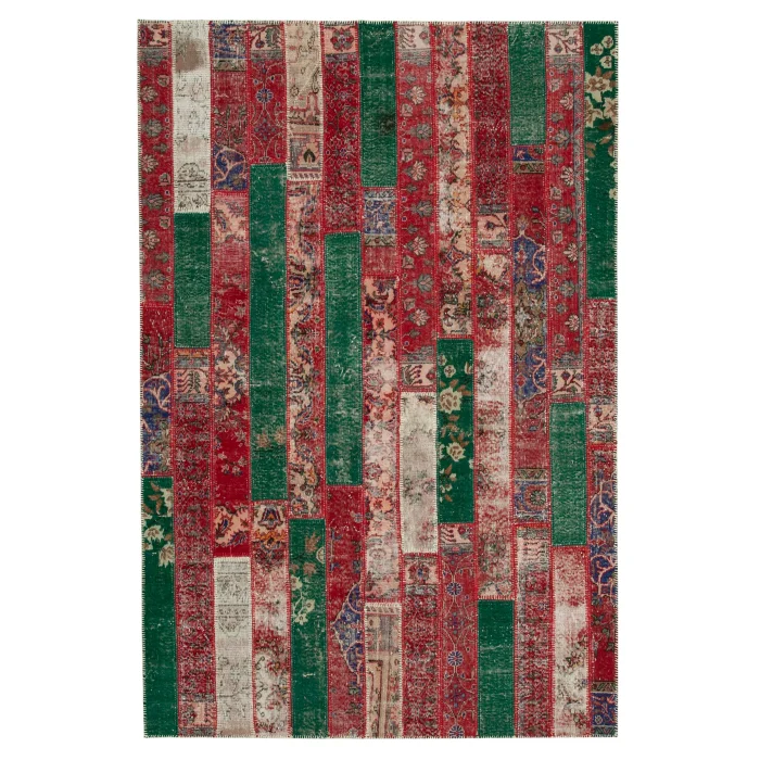 Modern Dizayn Patchwork Carpet is 200 cm wide, 301 cm long and approximately 5 mm thick. It weighs an average of 17 kg. It is made with hand-spun wool and cotton. It gets its colors from root dyes obtained naturally.