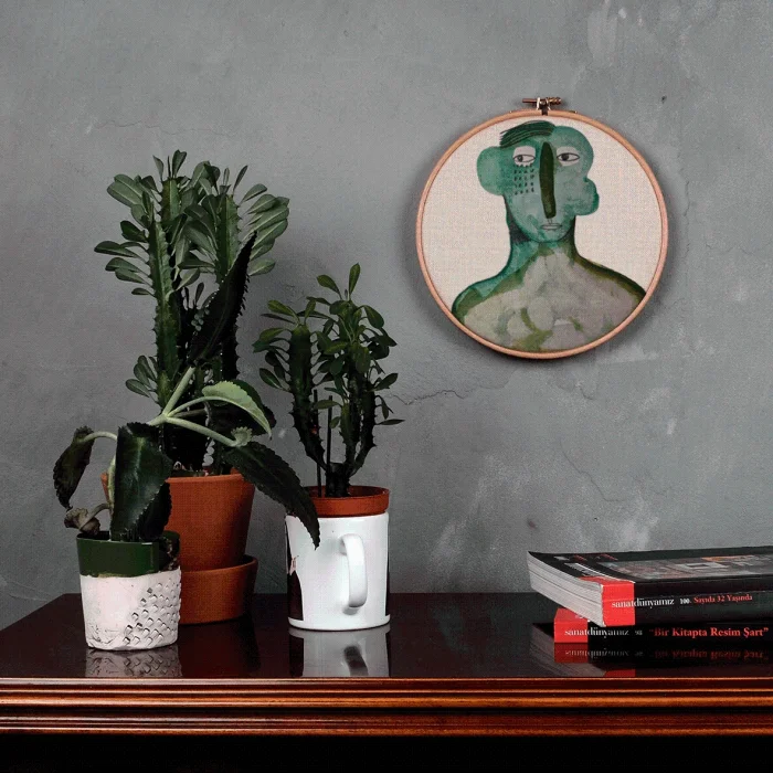 It is produced by stretching fabric on the pulley. Any drawing of Serkan Akyol can be applied.