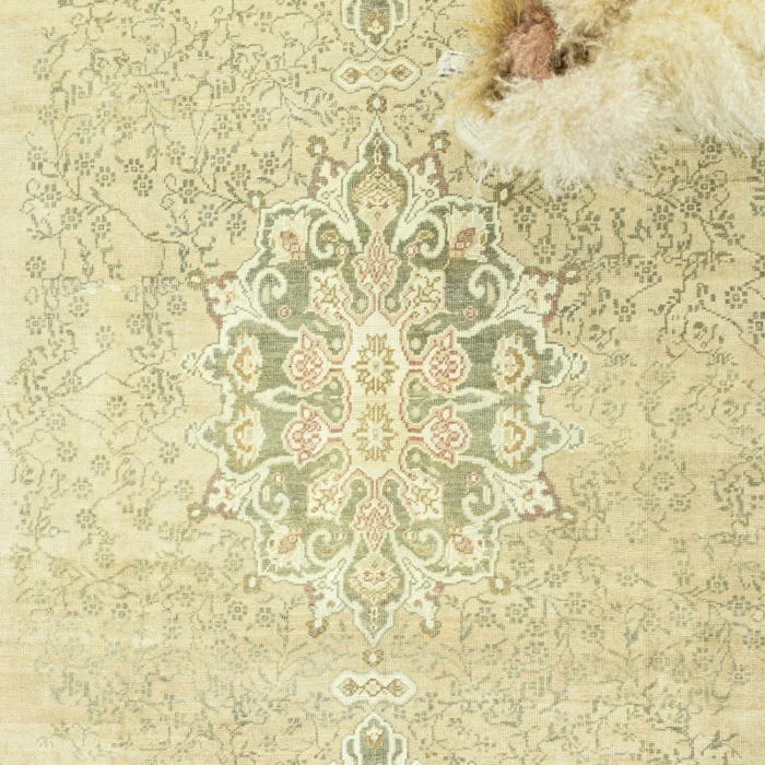 Soho Antiq handwoven carpets and rugs are designed to add a breath of fresh air to your living spaces. This elegant handwoven rug is created by skillfully combining carefully selected high-quality wool yarns. Produced using traditional hand-weaving techniques, the carpet is specially designed to add warmth and elegance to your home. The color palette is inspired by the soft tones of nature, drawing attention with the harmony of beige and green colors while achieving harmony with other colors in the carpet. The rug was carefully woven by experienced artisans and produced in the 1970s with traditional techniques specific to the Karapınar region of Konya, adding cultural depth to the rug. The size of the rug is measured as 199 x 341 cm, allowing the rug to easily adapt to different living spaces. The thickness of the carpet is between 1 - 3 cm. Beyond its aesthetic value, this handwoven rug excels in adding authenticity and a traditional feel to your home.