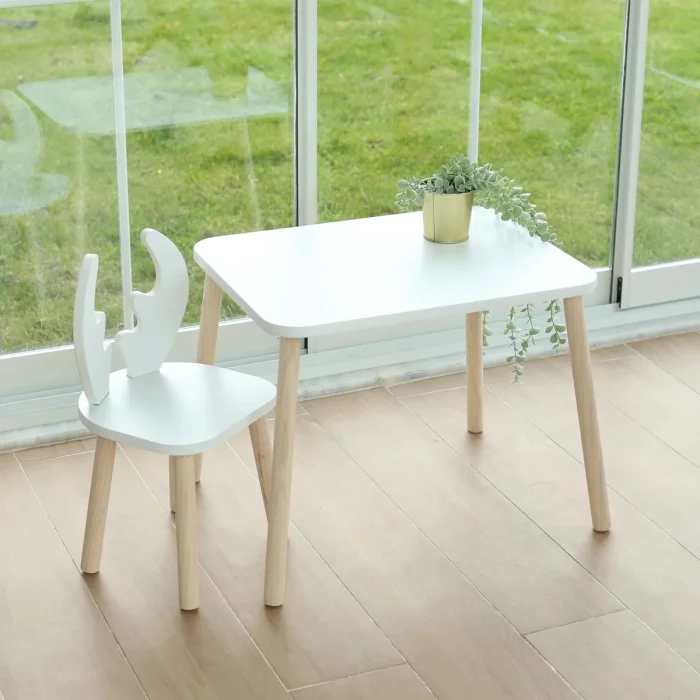 The White Deer 1 Table + 1 Chair (Deer Kids Montessori Study Table Chair)