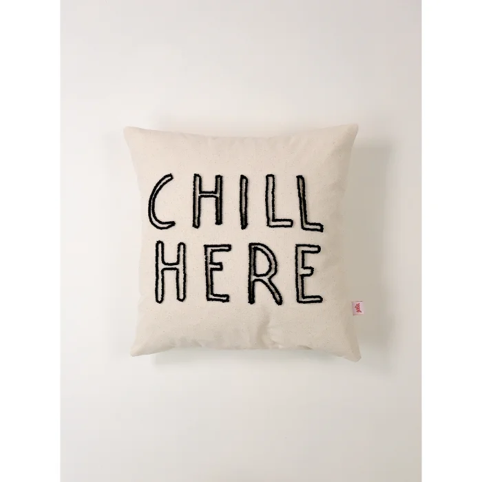 Product: Chill Here - Pink | Handmade Embroidered Decorative Cushion Cover
