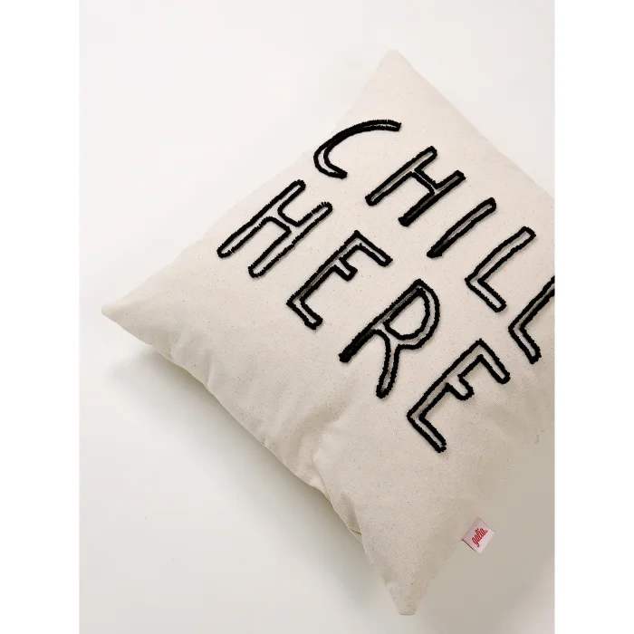 This pillowcase, which carries the message "CHILL HERE" special for those who create a corner of their own, adds an energetic yet simple touch to your relaxation areas.
