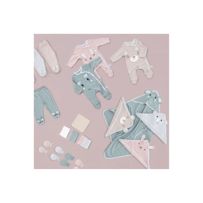 Product Description:Gezenbebe Hero Baby Hospital Outlet Set 11 Pieces: A Unique Set to Complete Your Baby's First Days! Meet Gezenbebe's 11-piece special set to welcome your newborn baby in the most stylish and comfortable way in its first steps. With its carefully selected pieces, iconic Gezenbebe patterns and quality, it is with you whenever your baby needs it. Set Contents: EMBROIDERED HAT: A hat decorated with original Gezenbebe heroes, which will keep your baby's head warm. EMBROIDERED BIB: An apron that protects your baby and is enriched with the four heroes of Gezenbebe.1 EMBROIDERED ZIBIN and 1 FLAT ZIP: Jumpers designed for your baby's comfort in two different designs. BOOTIES: Stylish pants that keep tiny feet warm. GLOVES: Baby's skin-friendly gloves. EMBROIDERED SHORT SLEEVE BODY and STRAIGHT LONG SLEEVE BODY: Two separate bodysuits for two different styles and uses. EMBROIDERED JUMPSUIT: Practical jumpsuit decorated with the original heroes of Gezenbebe. EMBROIDERED BLANKET: A soft blanket that will keep your baby warm and be side by side with him at all times.3 MOUTH CLOTHS: Functional and stylish diaper set. Prominent Features:GEZENBEBE SIGNATURE: The pinnacle of baby fashion with its unique Gezenbebe design and detailed embroidery. FULL PROTECTION: Every piece in the set has been carefully selected for your baby's comfort and elegance. UNIQUE DESIGN OF GEZENBEBE: Elephant, Koala, Teddy Bear and Rabbit; The four beloved heroes of Gezenbebe bring your baby together with a unique elegance with this set.ULTIMATE COMFORT: Made of 100% breathable cotton fabric, this set offers your baby the highest comfort. UNISEX DESIGN: Style suitable for every baby with trendy patterns. EASY TO USE: Quick and convenient operation with nickel-free snap buttons. GREAT GIFT: The perfect gift option for your relatives with a newborn baby. Technical Details:Size Options: NewbornColor Options: Bunny, Elephant, Koala, Teddy (Organic). With the Gezenbebe Hero Baby Hospital Exit Set 11 Pieces, every need of your baby has been considered. Your special moments become even more valuable with the quality and elegance of Gezenbebe.