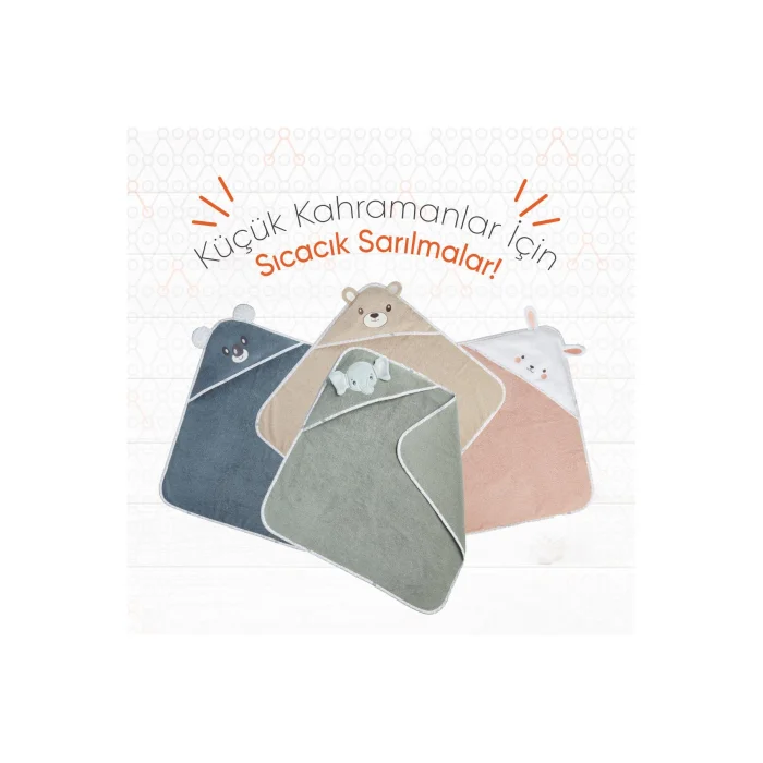 Product Description: Gezenbebe Hero Hero Hooded Baby & Child Drying Towel: Heroes' Warm Embrace, The Cutest Hug After Bath! Gezenbebe Hero Hero Baby and Child Drying Towel with Hero Hood is specially designed to keep your baby warm and dry after bathing. This drying towel, which has an elegant look with pastel tones, is home to the detailed embroidery and touching ears of Gezenbebe's cute heroes, Elephant, Rabbit, Teddy Bear and Koala. The hood is ideal for comfortably wrapping your baby's head and protecting him from cold weather. The iconic Gezenbebe patterned piping adds a stylish touch to the product. With its 100% cotton structure, this extremely soft and breathable towel for your baby's sensitive skin will be indispensable for your post-bath ritual. Salient Features:UNIQUE GEZENBEBE DESIGN: Equipped with cute hero embroidery, this drying towel becomes an indispensable post-bath staple for the little ones. QUALITY COTTON: Thanks to its ultra-soft cotton fabric, our towel offers longevity while protecting your baby's delicate skin. WARM HOOD: The hero embroidered hood keeps your baby's head warm and provides comfort. CUTE AND RELAXING: The unique pattern of the towel soothes the mood of the little ones after bathing. SPECIAL FOR SENSITIVE SKIN: With its hypoallergenic structure, it is ideal for babies with allergies and sensitivities. PERFECT GIFT OPTION: With its unisex and vibrant colors, it is a great gift choice for baby boys and girls. ECOLOGICAL PAINT: Environmentally friendly water-based paint is preferred in the patterns. CUSTOMER ORIENTED: We are constantly improving our products in line with our customers' feedback, focusing on quality and comfort in every detail. Technical Details:Dimensions: 75x80 cmMaterial: 100% natural cottonHigh Water Absorption Capacity: The natural structure of cotton effectively absorbs water, helping baby's skin dry quickly. Color Options: Bunny (Rabbit), Elephant (Elephant), Koala (Koala) and Teddy (Teddy) Care Instructions: Wash at 30 degrees and dry without exposing to direct sunlight. Offering comfort and convenience by gently wrapping your baby's skin, the Gezenbebe Hero Hero Tea Towel with a Hero Hood makes your post-bath moments more special.