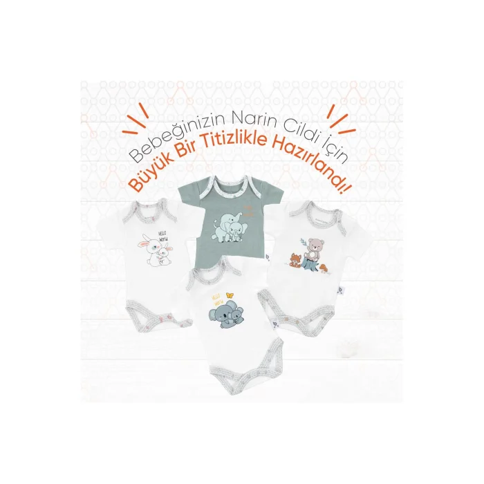 Product Description:Gezenbebe Hero Short Sleeve Body for Babies: Carefully Prepared for Your Baby's Delicate Skin - With Gezenbebe's Signature Pattern and Beloved Mascots! The perfect choice for your baby's sensitive skin: Featuring iconic patterns from Gezenbebe and mascots of Elephant, Koala, Teddy Bear and Rabbit, this bodysuit completes your baby's clothing collection. Highlights:GEZENBEBE'S UNIQUE DESIGN: Not just a baby bodysuit, but a style statement with Gezenbebe's original and exclusive patterns. PURE COTTON COMFORT: Made of 100% breathable cotton, the Hero Short Sleeve Body offers the softest touch to your baby's skin.SIGNATURE PATTERN & BELOVED MASCOTS: This bodysuit makes a difference in your baby's wardrobe with Gezenbebe's unique design, as well as its beloved mascots Elephant, Koala, Teddy Bear and Rabbit. UNISEX AND MODERN: It is designed for both girls and boys and draws attention with its fashionable patterns. USER-FRIENDLY: Offers easy wearing and replacement with its nickel-free snap design. PERFECTION IN EVERY DETAIL FOR YOU: We care about customer feedback and are constantly improving our products to make them perfect with comfort, fit and quality. Technical Details:Size Options: Newborn, 0-3 months, 3-6 months, 6-9 months, 9-12 months, 12-18 months. Color Options: Bunny, Elephant, Koala, Teddy (Organic)Please carefully review the size and color options before ordering. The Gezenbebe Hero collection is not just an outfit for your baby, but also the perfect combination of comfort and style. Make every moment of your baby's life!
