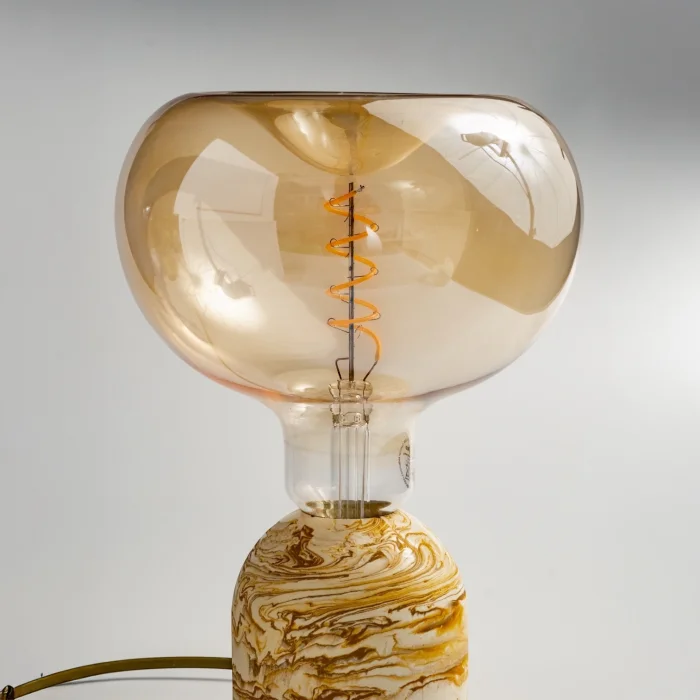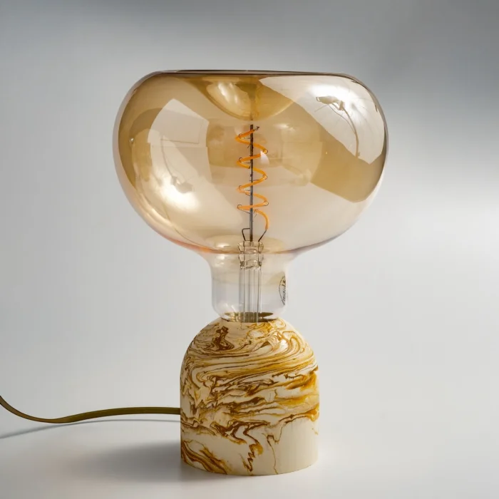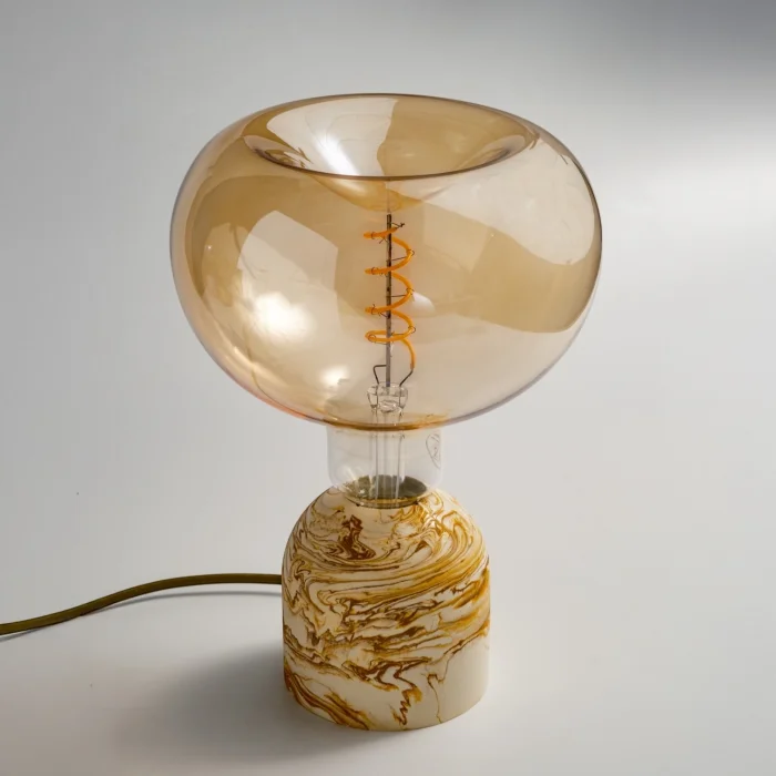 Designed table lamp with handmade concrete pedestal and glass hat selected in special color