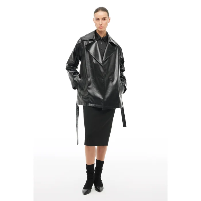 Product Details: Made with a blend of 59% PVC fiber, 39% polyester and 2% elastane, this trench coat offers a durable and flexible structure; While it provides a classic elegance with its men's collar detail and regular fit pattern, its long sleeves and standard length form add harmony to daily combinations. The low sleeve design adds a modern touch; Pattern : Regular Fit Sleeve : Low Sleeve Collar : Men's Collar Sleeve : Long Sleeve Model Length : Standard Size Woven-Knitted : WOVEN Gender : Female Place of Production : Turkey Blend : 59% PVC Fiber 39% Polyester 2% Elastane Closure Type : Button Season : 2025 - 2026 AUTUMN WINTER Age Group: WomenSleeve Length: Long Sleeve