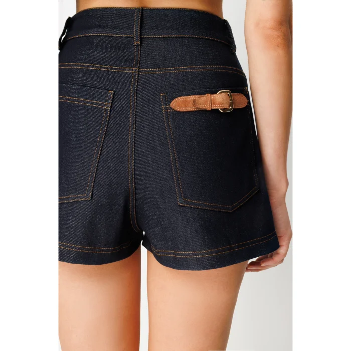 its short length highlights the legs, the suede belt detail and gold-plated buckle in the back pocket add a touch of sophistication to the shorts