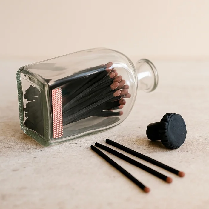 Adapting to the minimalist decoration approach, this stylish glass candle match offers both durability and elegance with its high-quality glass material. Thanks to its design that comes with extra-long black matches, you can easily light your candles and add an aesthetic touch to your space.