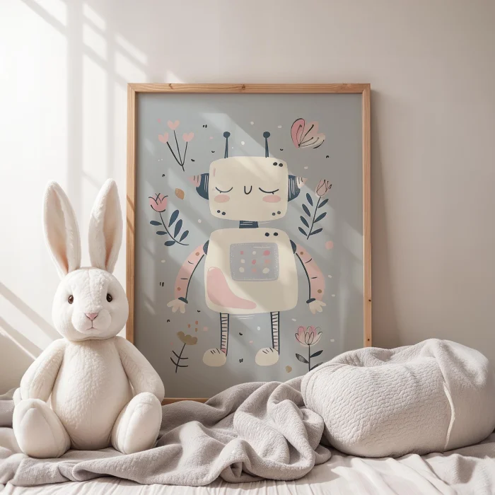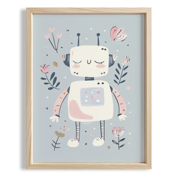 Product: Cute Robot Among Flowers Kids Room Wooden Wall Art