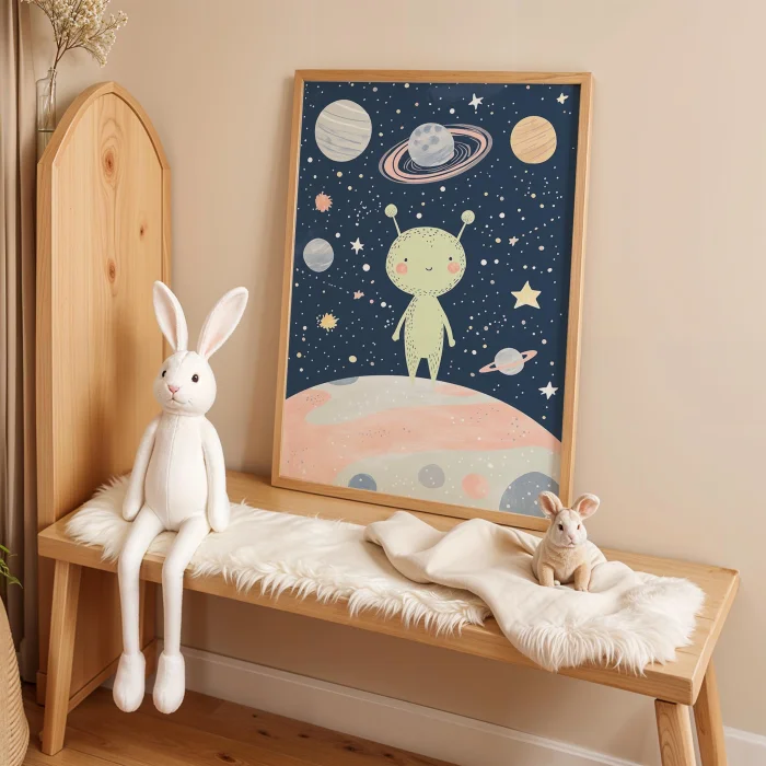 Uzay Ve Gezegenler Children's Room Wooden Framed Wall Art