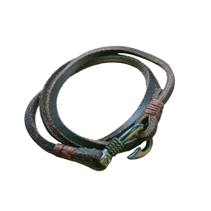 Product: Leather Thread Wrapped Brass Hook Closure Men's Bracelet