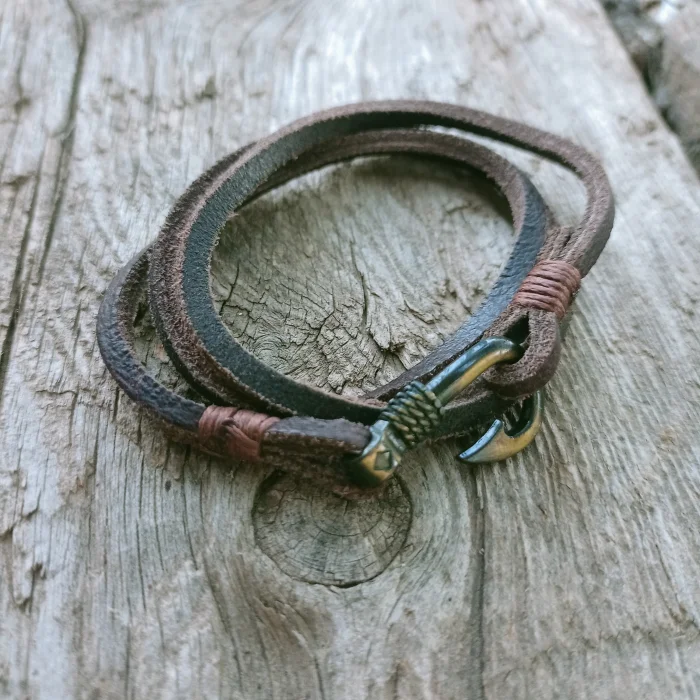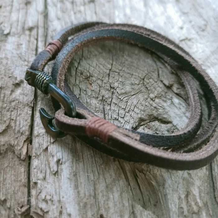 The brass hook closure offers the perfect balance both functionally and aesthetically. The non-tarnishing brass acquires a natural patina over time over the life of the bracelet, giving it a special character. The hook, which can be easily attached and removed, provides comfort in use and guarantees that the wristband stays securely in place.