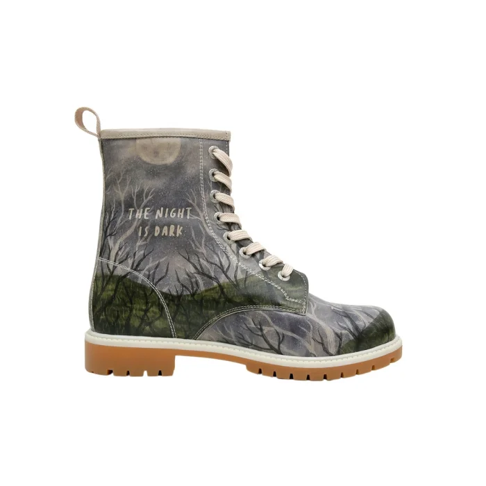 Product: Women Vegan Leather Gray Long Boots - The Night Is Dark Design