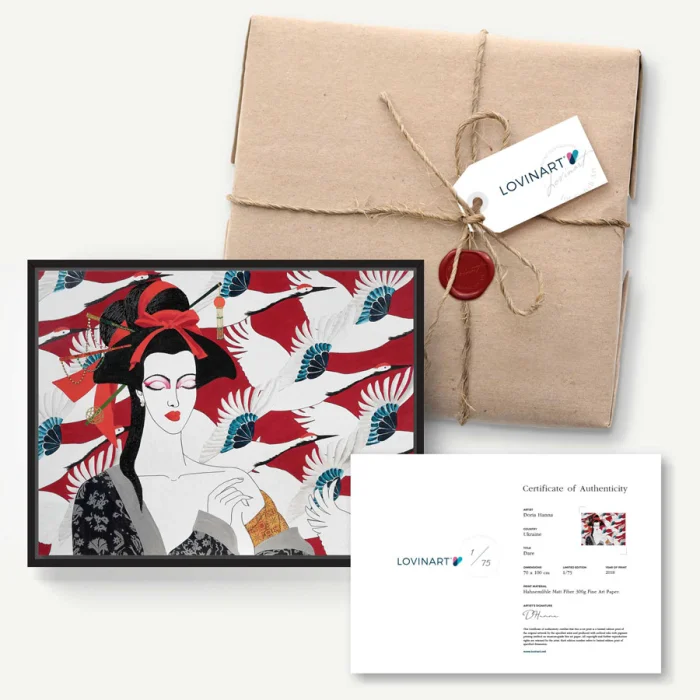 The limited edition artwork is sent to the art buyer together with the signature of the artist on the 'Certificate of Authenticity' indicating which copy of the total editions. In addition, all the printing details, including the printing technique, quality and the fine art paper used, are listed on the certificate.