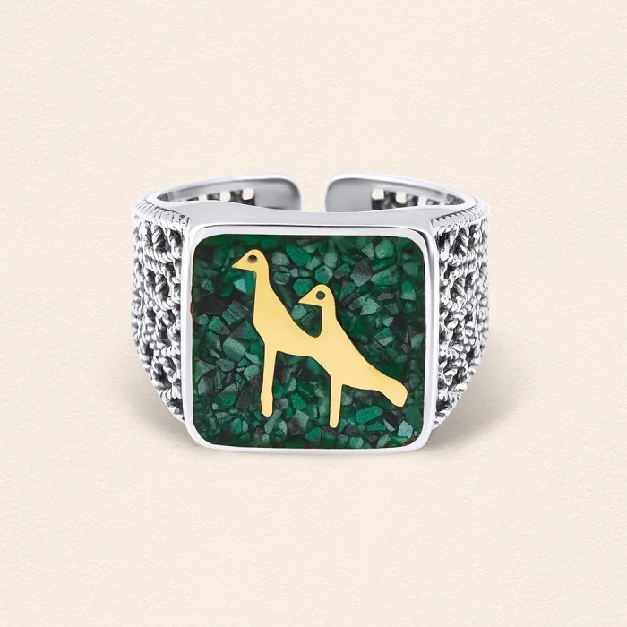 925 sterling silver, gold plated, natural lapis stone mosaic, handmade filigree ring