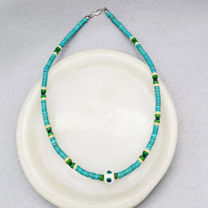 Product: Murano Evil Eye Blue Green Howlite Necklace