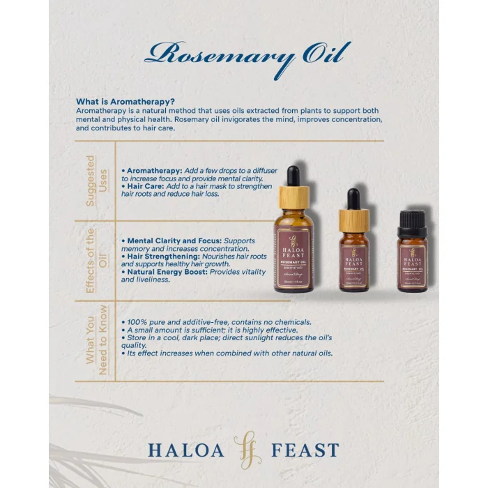 Refresh your energy, strengthen your mind and body with Haloa Feast Rosemary Essential Oil. Order now and bring health and vitality into your home.