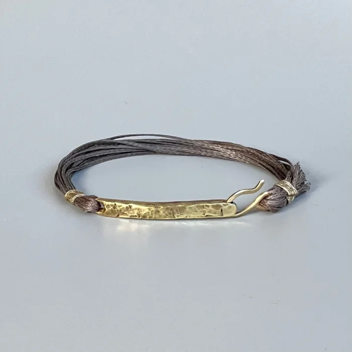 Bronze and waxed rope, the rope part can be brown, gray, black, red and navy blue. You can specify it in the note section.