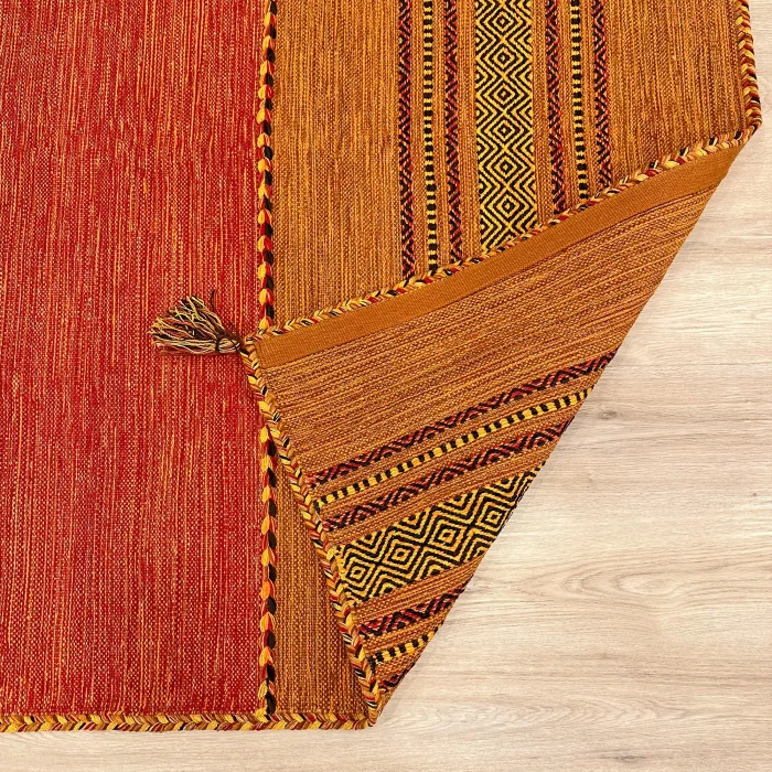 Produced with the hand-woven technique, this rug offers a modern and stylish look with its striped pattern Thanks to its cotton material, it glides comfortably under your feet with its soft texture and provides a comfortable walking experience with its moderate pile height