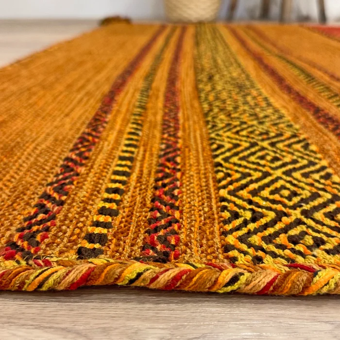 Produced with the hand-woven technique, this rug offers a modern and stylish look with its striped pattern Thanks to its cotton material, it glides comfortably under your feet with its soft texture and provides a comfortable walking experience with its moderate pile height