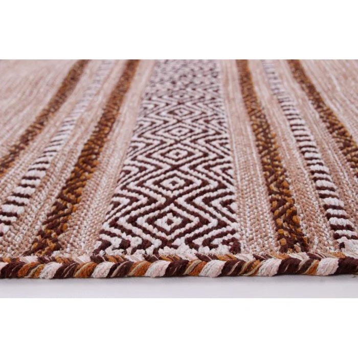 Produced with the hand-woven technique, this rug offers a modern and stylish look with its striped pattern Thanks to its cotton material, it glides comfortably under your feet with its soft texture and provides a comfortable walking experience with its moderate pile height
