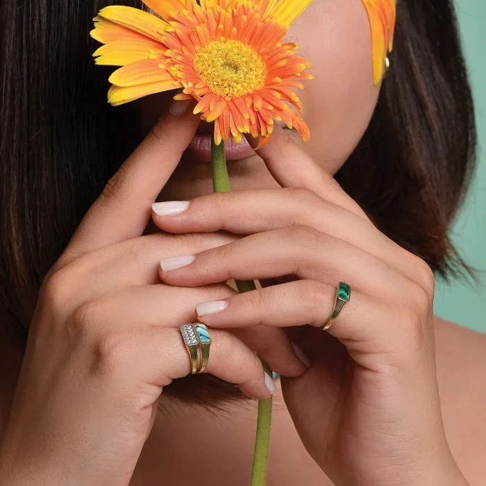 14k Micron Gold Plated on 925 Silver. Malachite Mine. Silver Weight: 2.60 g. The product is certified.