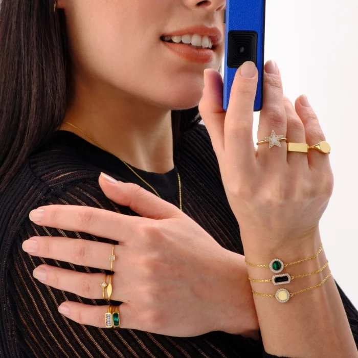14k Micron Gold Plated on 925 Silver. Malachite Mine. Silver Weight: 2.60 g. The product is certified.