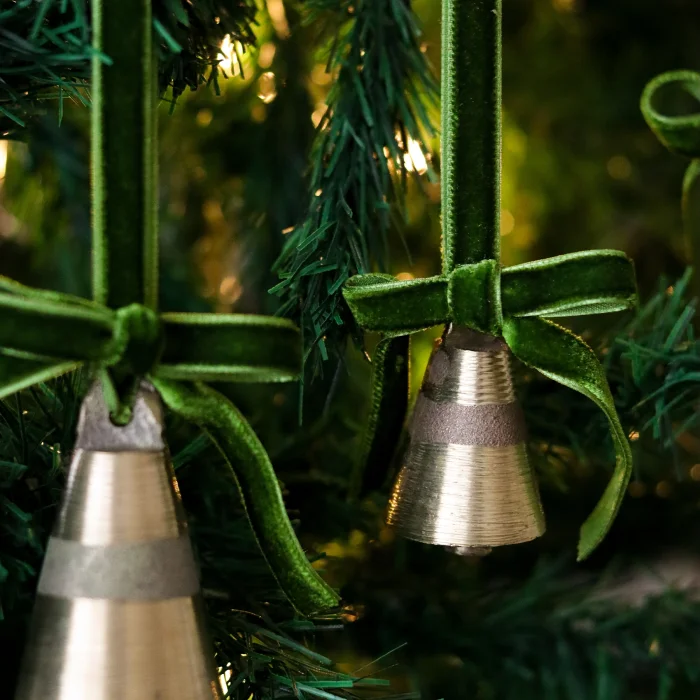 Decorate your tree in true traditional Christmas style with the Velvet Ribbon Medium Bell from the Beige & Stone Christmas collection. Dimensions:; Ribbon: 12 cm ; Gold bells: H: 5 cm ; It is made of velvet ribbon and brass bell.