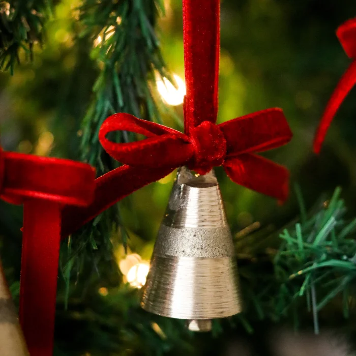 Decorate your tree in true traditional Christmas style with the Velvet Ribbon Medium Bell from the Beige & Stone Christmas collection. Dimensions:; Ribbon: 12 cm ; Gold bells: H: 5 cm ; It is made of velvet ribbon and brass bell.
