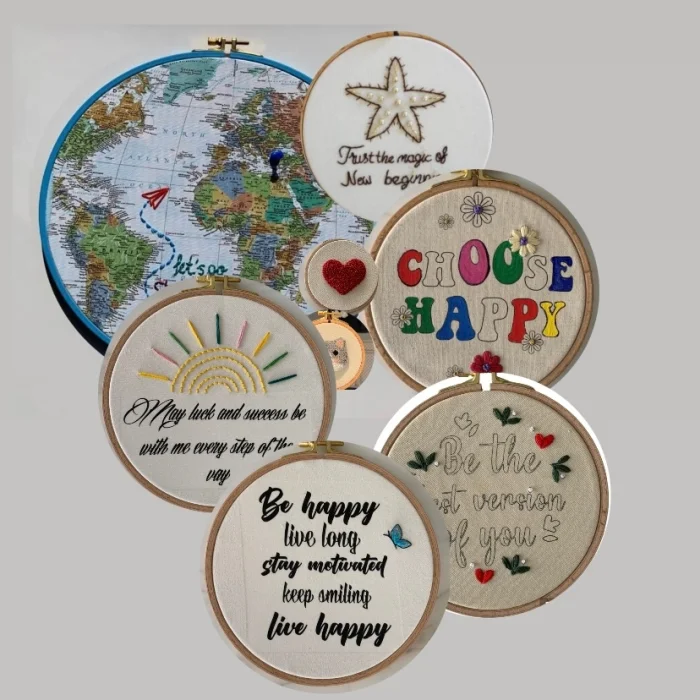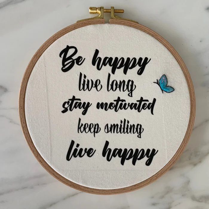 Live Happy Print Embroidery Hoop Board