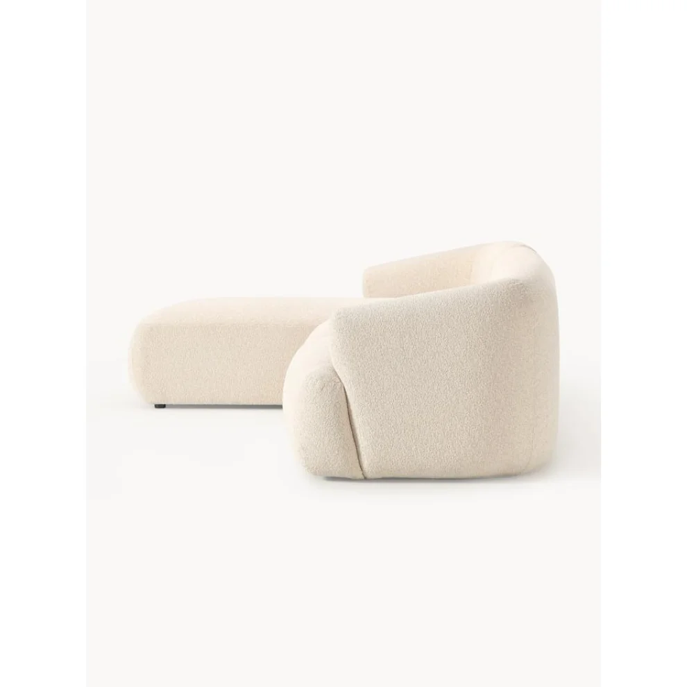 Leg height is 2.5 cm, and the maximum weight capacity per module is 150 kg. Material Fabric content: 70% polyester, 30% cotton. The fabrics were tested with 35,000 friction cycles in the Martindale test to make them more durable and long-lasting. Bouclé is a material characterized by its irregular curved structure. The characteristic surface is formed by woven loops made of different threads, which give the fabric a unique structure. The loop structure has an insulating and fluffy effect at the same time, which makes the fabric extra cute. The materials used in this product have been tested for harmful substances and are certified according to OEKO-TEX® SH015183646, TESTEX according to STANDARD 100. Upholstery: Foam padding + down sponge padding. Density: 35 DNS soft Frame: Baked hornbeam wood and MDF Feet: Plastic This product is made from wood from FSC-certified® sustainable sources. Tips The product is delivered fully assembled and can be used immediately after unpacking. The seat and back cushions are of medium firmness and at the same time offer a comfortable seating comfort. Upholstery filler is characterized by high elasticity, which allows the cushions to retain their shape. Light dirt can be easily removed with a damp cloth. Commercially available textile cleaning agents can be used for stubborn stains. Since we cannot provide a guarantee for cleaning agents, we have the following tip for you: Always test cleaning agents in an inconspicuous area! In this way, you can protect the fabric against possible wear. We recommend impregnating the fabric to ensure its longevity.