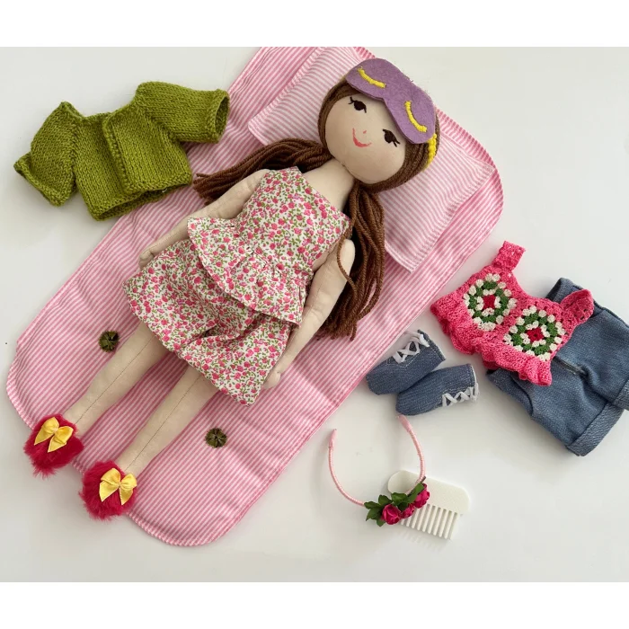 Lilly Doll comes with her outfit in a backpack that children can use. The bag is also Lilly Doll's bed. Inside the bag, her pajamas, comb, hair clips, hanger and pillow come out. All of these are in a wooden box. The box can be Lilly Doll's wardrobe and bed at the same time.