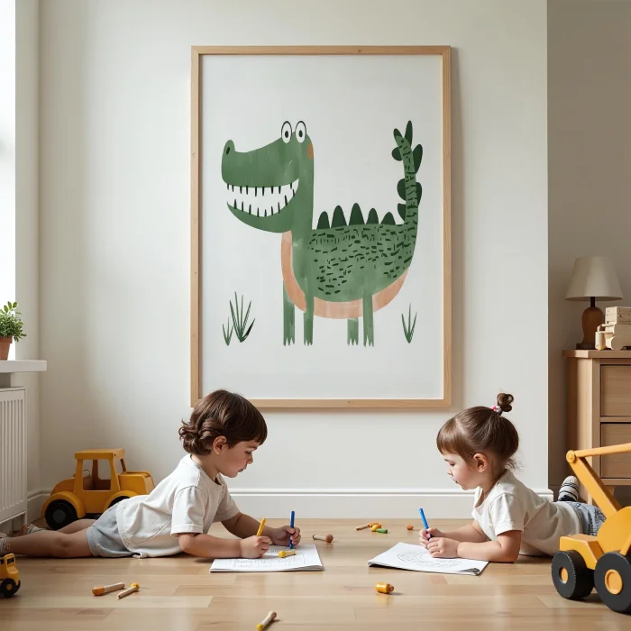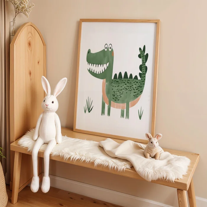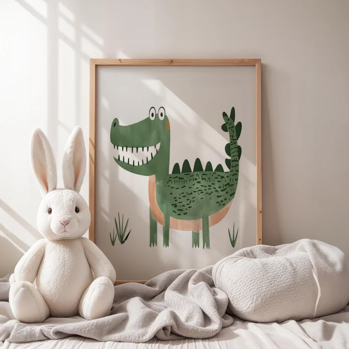 Product: Gülümseyen Cute Crocodile Children's Room Wooden Framed Wall Art