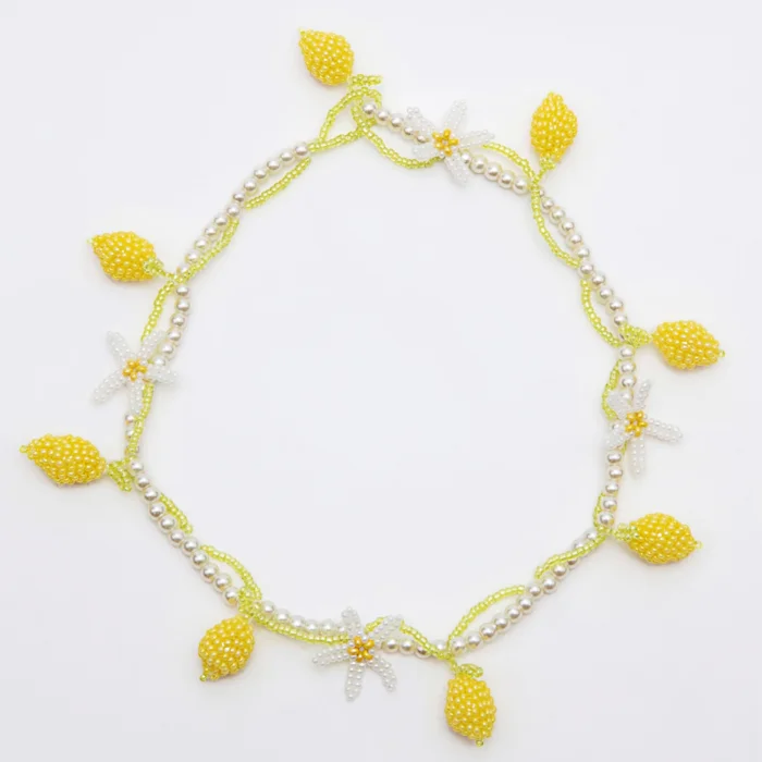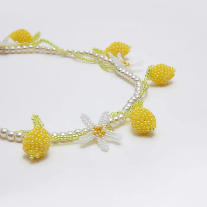 It is formed by knitting millimetric glass sand beads with fishing line for long hours. Custom design, Handmade.
