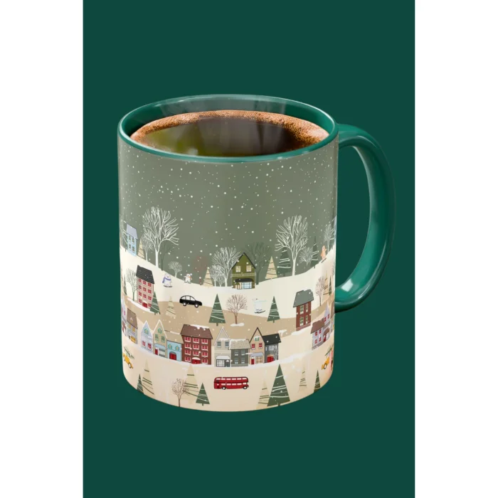 Winter Town-2 Themed Christmas Concept Holiday Village Design Porcelain Mug