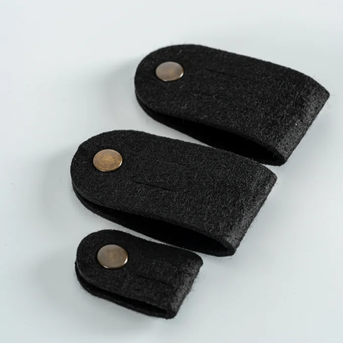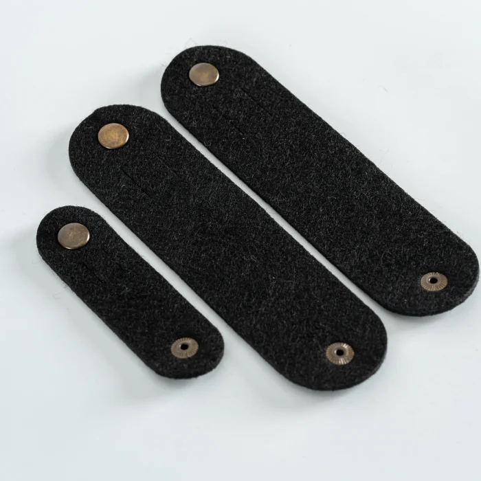 • Product Dimensions Large: 17cmx4.5cm Small: 10cmx3cm • Product snap fastener is made of 1st class antique material. • Felt is used. • The product is sold as 3 pieces, 2 large and 1 small cable organizer.