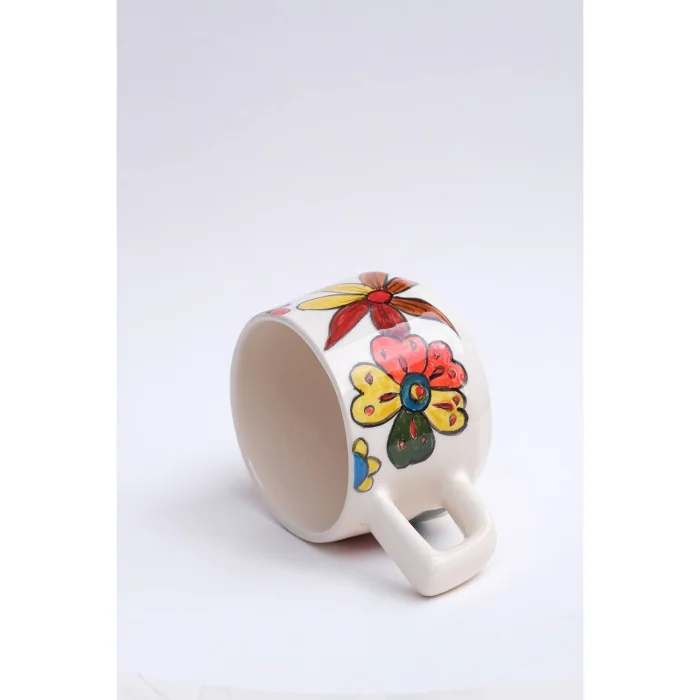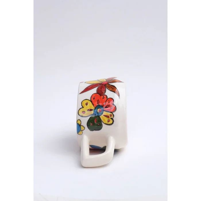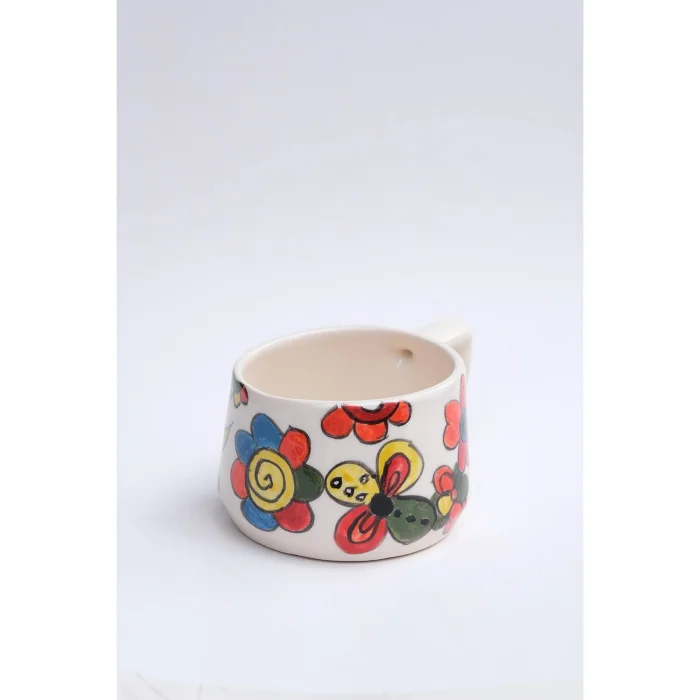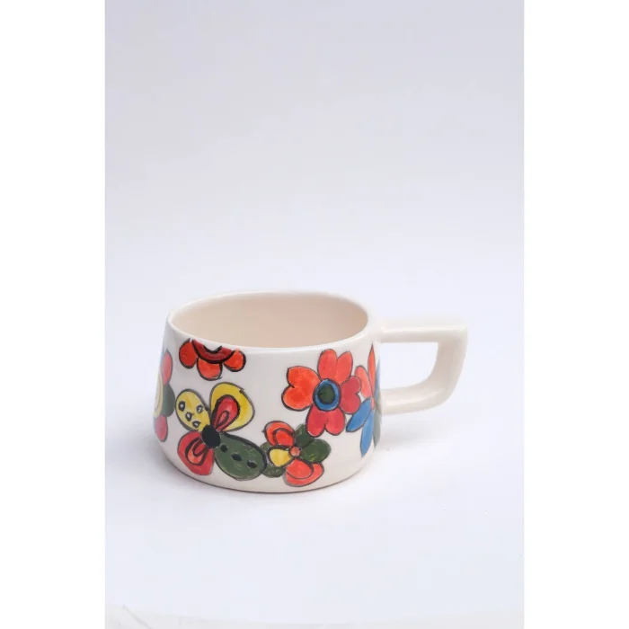 This ceramic mug has a height of 12 cm and a volume of 300 ml. It is handmade and each one is unique. It is made of durable ceramic material and is suitable for hot and cold drinks. Thanks to its ergonomic design, it offers a comfortable grip. Its outer surface is usually glazed, which both gives it visual aesthetics and provides long-lasting use. It can have hand-painted or custom-designed details. It can be washed in the dishwasher, but hand washing is recommended for long-lasting use.