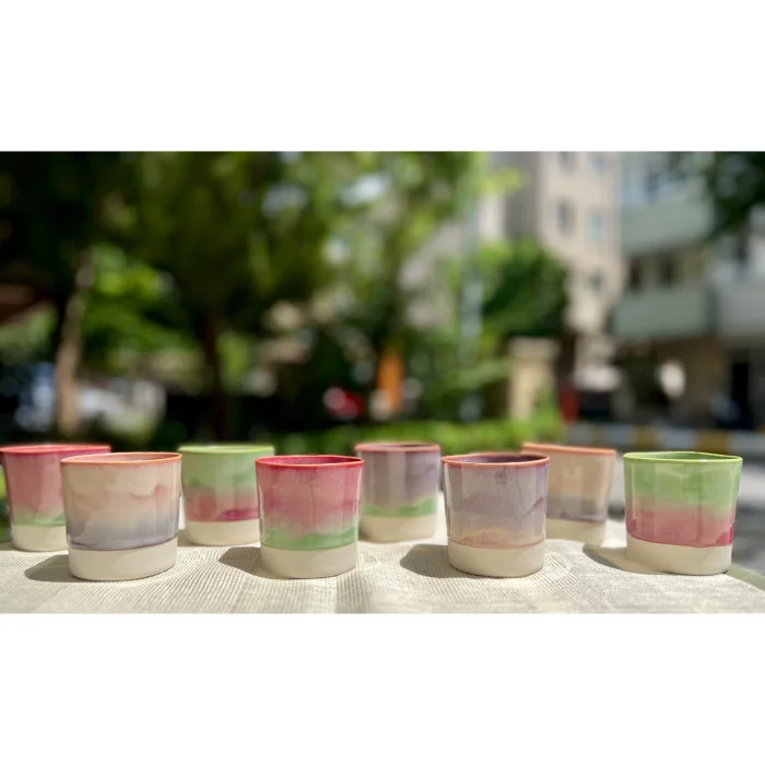 Products are made from imported stoneware ceramic sludge. Imported dyes suitable for food were used. Each cup is completely hand-shaped and hand-painted for you. For this reason, the products are usually not round. It has been added for the sake of visual illustration. There may be differences in size and color between products. Each cup is unique. The price is a single cup. Product details Diameter: 7 cm Height: 7 cm Volume: ~170 ml (due to the nature of the size may vary slightly)