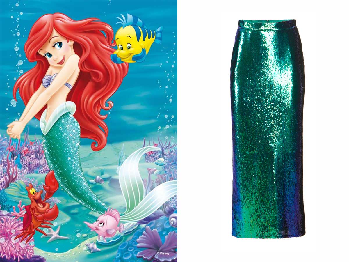 Parlak su yeşili etek + Mor Bluz + Bolca inci = Ariel