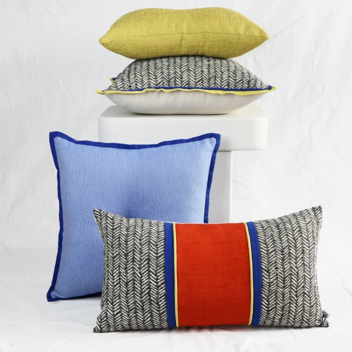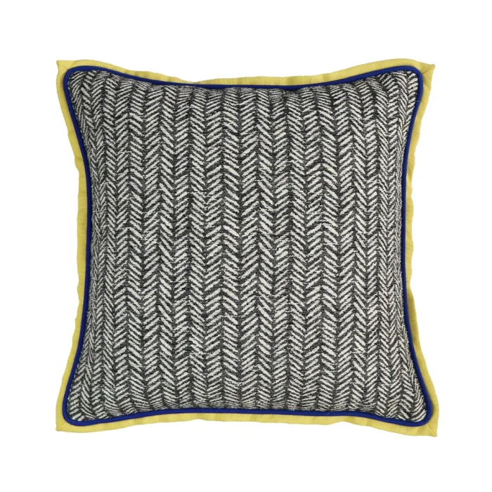 Square, herringbone pattern, yellow piping, blue wicking decorative pillow