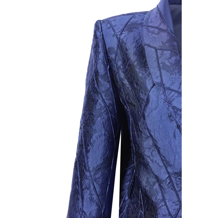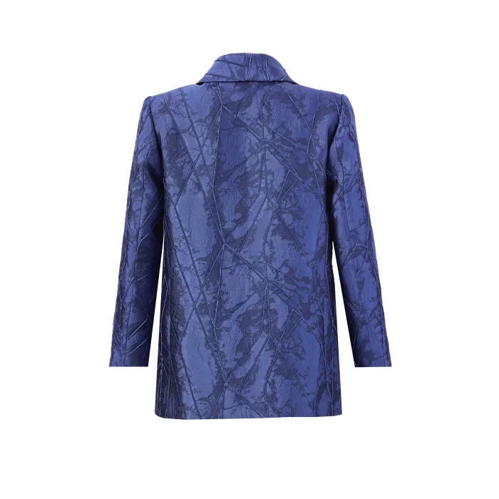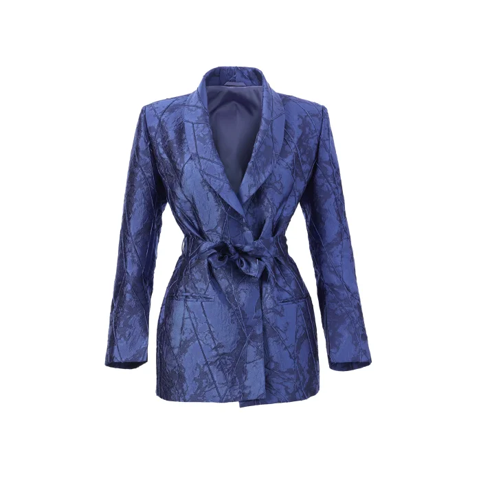 With its eye-catching embossed patterned texture, satin lining and elegant belt detail, the Cozy Cool jacket adds an assertive touch to your style. With its design that combines classic and modern lines with delicately crafted details, you can create magnificent combinations with classic trousers or flowing loose jeans.