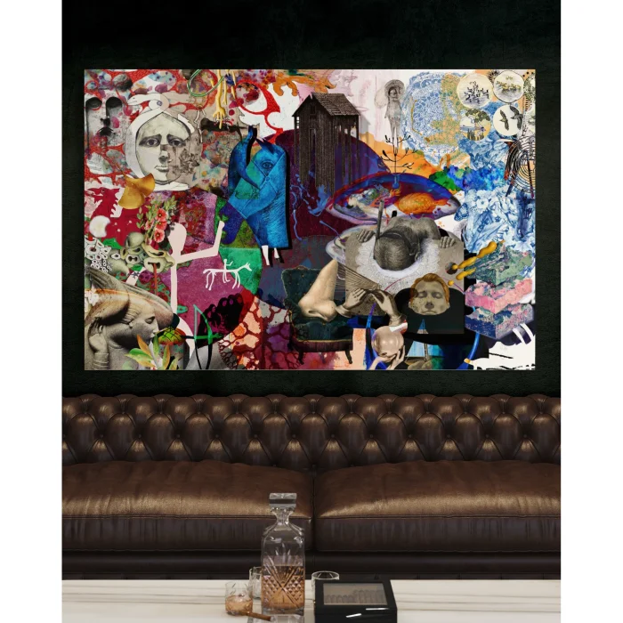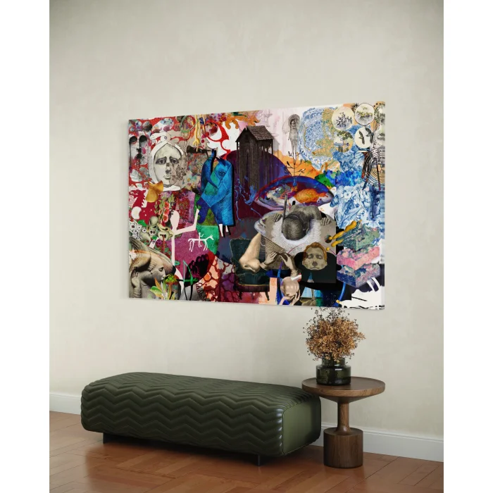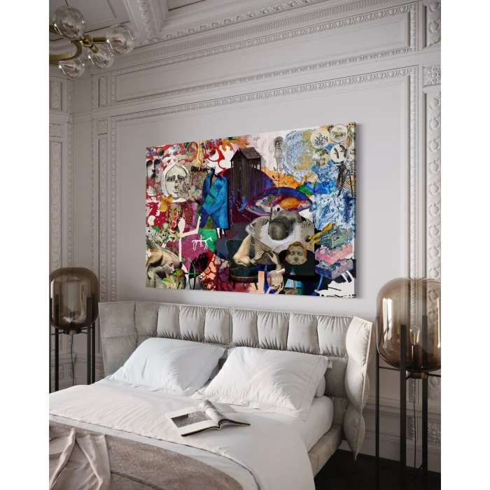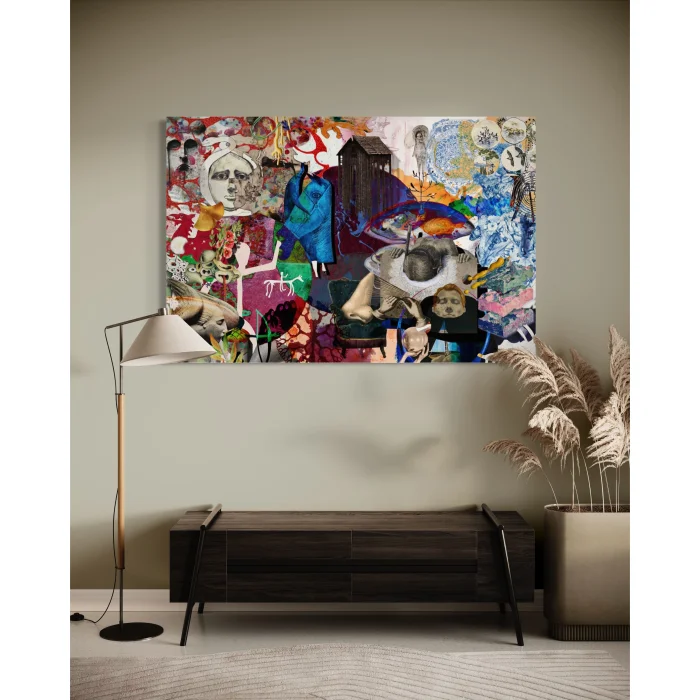 The painting "What's in Your Mind?" invites you to a deep journey through the fascinating world of art. Each element carries a mysterious meaning, loaded with symbols, and invites viewers to different interpretations and discoveries. In the center of the painting is a dazzling blue horse. This horse seems to be a symbol of a journey into the inner world of man. Besides her, the image of a girl bent over a table perhaps represents a glimpse into the memories of the past or the hopes of the future. In other corners of the painting, there are different symbols, such as closed female figures and a picture of an anthropologist. These seem to reflect the complexity, cultural past, and future of human society. Modern patterns and flowers also emphasize this complexity. The large nose can represent our connection to the past and roots. It may be a reminder of respect for history and traditions. As a result, this painting titled "What's Wrong with Your Mind?" opens a window into the depths of the human mind. Each detail inspires different interpretations and thoughts. -----The painting titled "What's on Your Mind?" invites you to a profound journey within the realm of art. Each element carries a mysterious significance, laden with symbols that beckon viewers to explore and interpret in various ways. At the center of the painting, a dazzling blue horse takes prominence. This horse appears to symbolize a journey into one's inner world. Alongside it, an image of a young girl with goggles, leaning over a table, may represent a glimpse into memories of the past or hopes for the future. In different corners of the painting, you'll find various symbols, such as images of veiled women and an anthropologist. These symbols seem to reflect the complexity of human society, its cultural history, and its future. Modern patterns and flowers accentuate this complexity. The prominent large nose may symbolize our connection to the past and our roots, serving as a reminder of respect for history and traditions. In conclusion, the painting "What's on Your Mind?" offers a window into the depths of the human mind. Each detail inspires different interpretations and thoughts. For art enthusiasts, this artwork promises a new discovery with every gaze.