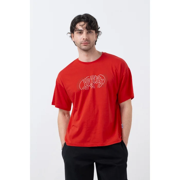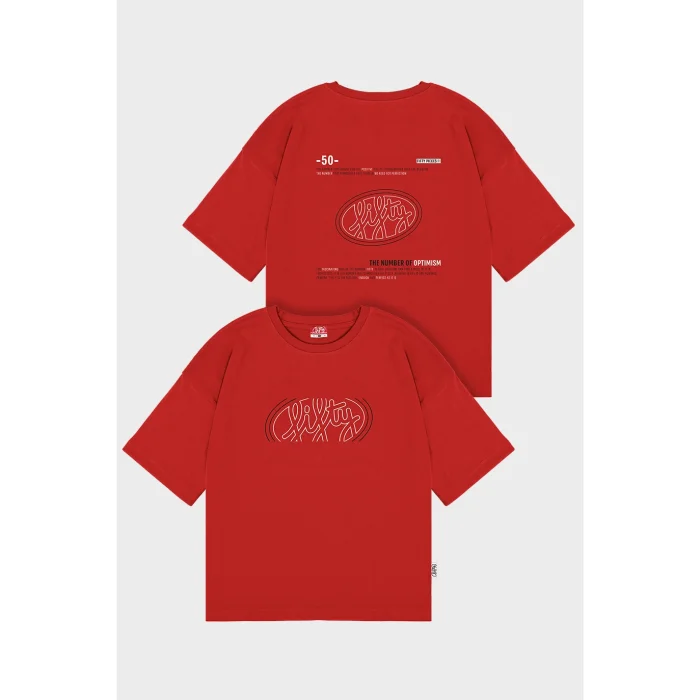 T-shirt with a zero neckline, back print and dropped shoulders.