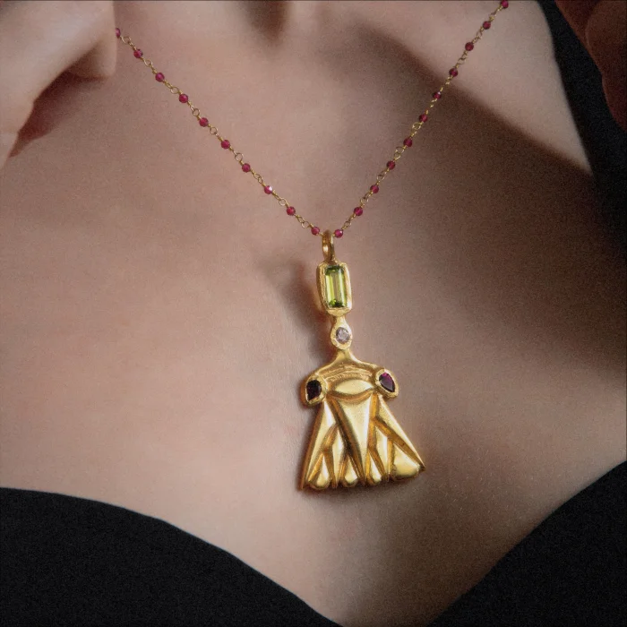 Nefertem Necklace is made with recycled 925 sterling silver 24ct gold plated.