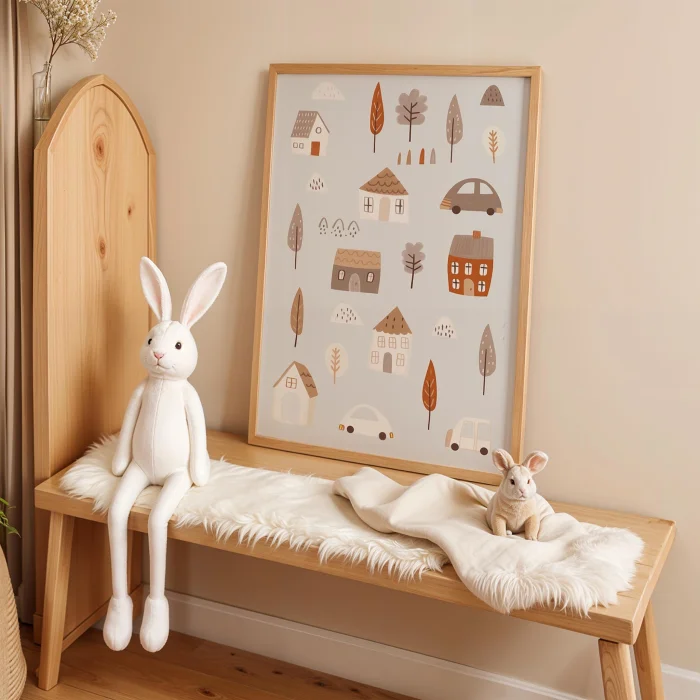 Product: Cute Houses And Town Pattern Kids Room Wooden Wall Art